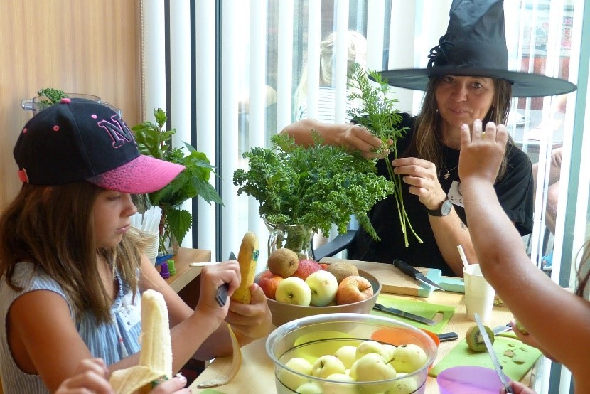 Zur Stärkung wird ein gesunder Hexensmoothie gemixt, dazu gibt es auch noch ein Stück Kuchen.
