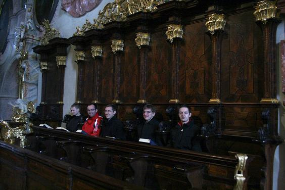 Gleich nach der Heiligen Messe gab es eine F�hrung durch das Stift, beginnend bei der Kirche. Der Prior erwies sich dabei als au�erordentlich kundig, bis zu den Details der Deckenfresken. Danach folgten Bibliothek und Marmorsaal, �lmalereien und Ziergegenst�nde waren tats�chlich beeindruckend. Vor allem aber die au�erordentliche Gastfreundschaft der Chorherren wird uns sicherlich in guter Erinnerung bleiben.Wir sind Abt Michael und Prior Benedikt daf�r sehr dankbar.