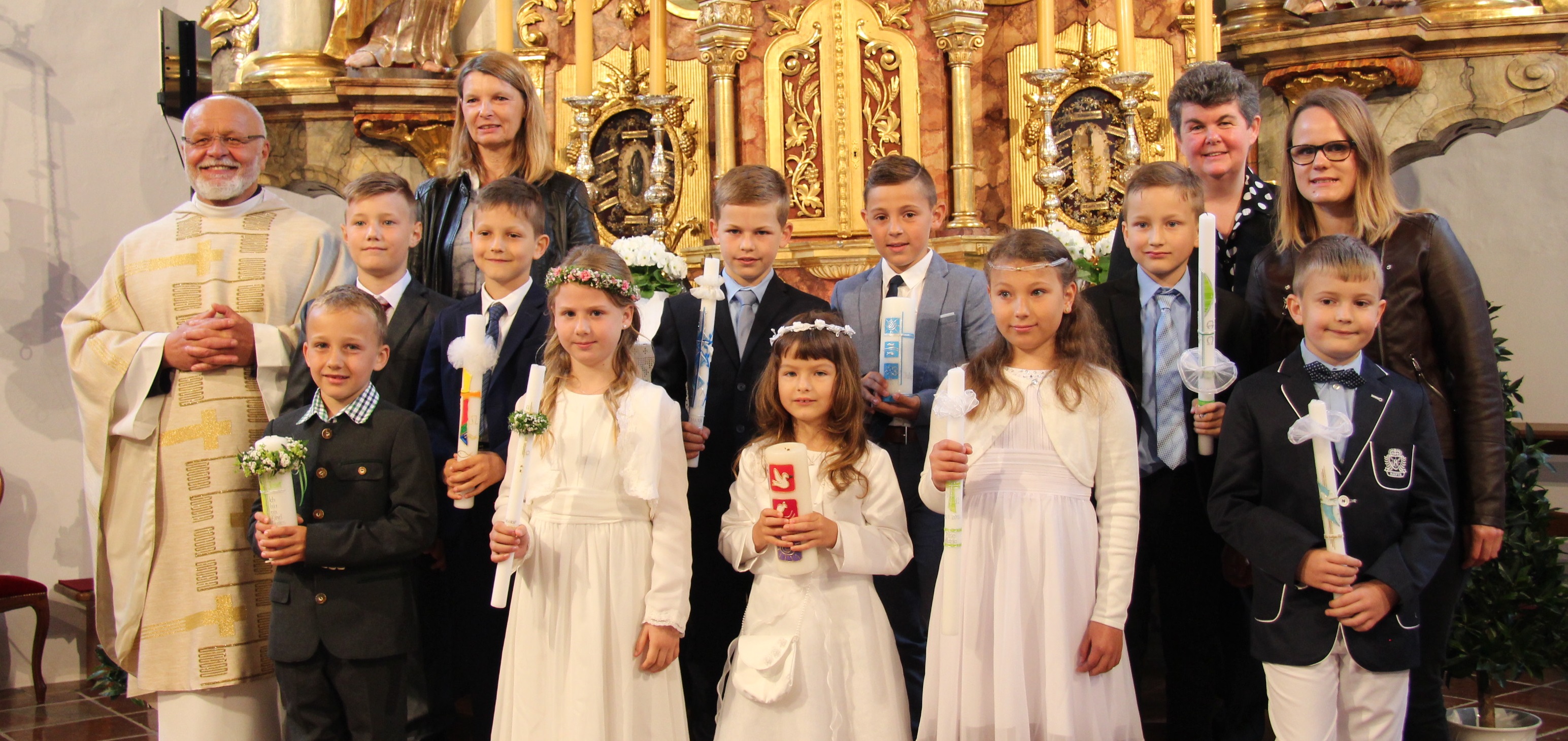 10 Kinder feierten in der Kirche St. Martin in Diersbach am Christi Himmelfahrt Fest ihre Erstkommunion. Die Vorbereitungszeit und der festliche Gottesdienst standen dabei unter dem Thema "Lasst die Kinder zu mir kommen". Die feierliche Messe zelebrierte Pfarrer Thaddäus Kret