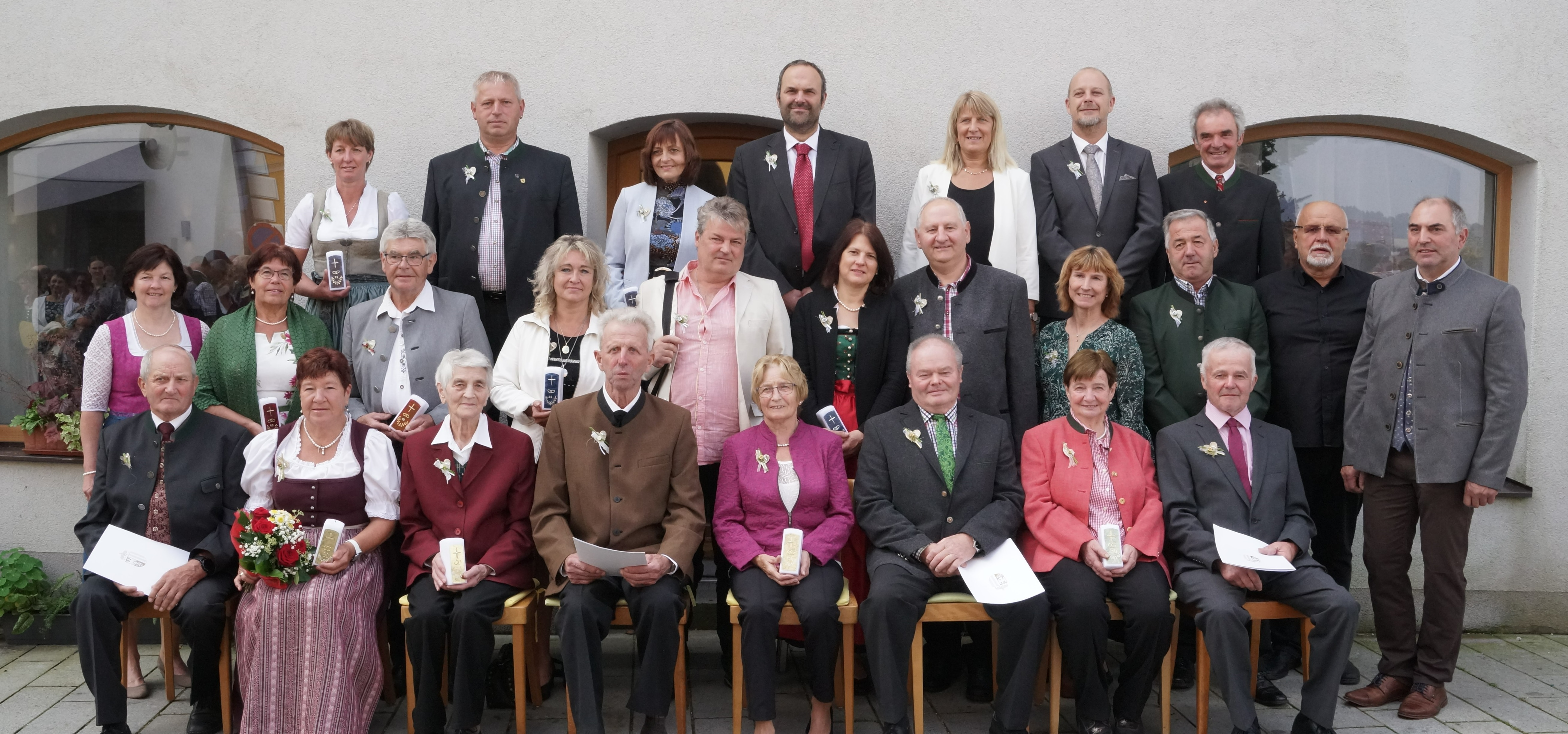 3 Diamanten ,4 Goldene , 6 Rubin, und 8 Silberne Jubelpaare feien, festlich mit Musikverein Diersbach und den Goldhauben in unsere Pfarrkirche eingezogen' Da in diesem Corona Jahr im Gasthaus kein Mittagsessen möglich war, haben sich die Jubelpaare sehr bald nachher "in Atle winde" zerstreut, einige waren zum Mittagessen zum Wirtshaus gekommen. Danke allen für dieses schöne Fest!