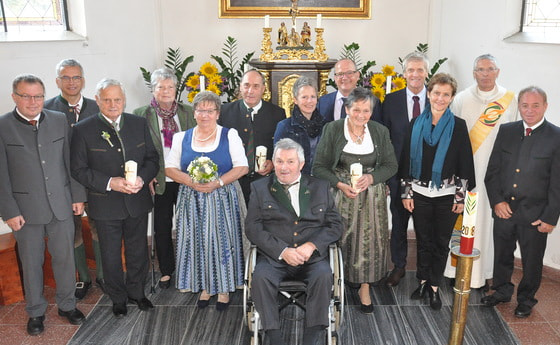 Das Fest begann mit einer kurzen Andacht beim Kindergarten, von wo aus die Jubelpaare und die Erntekrone in einem Festzug von der Musikkapelle, der Goldhaubengruppe, dem Bürgermeister und den Pfarrrepräsentanten sowie der Bevölkerung zur Kirche begleitet wurden.