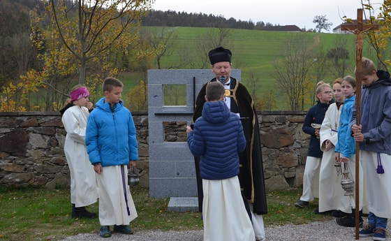 Am Allerheiligentag wurde bei der Gräbersegnung auf dem Friedhof auch die Eröffnung und Segnung der neuen Urnengemeinschaftsanlage durch unseren Pfarrer Abt Reinhold Dessl vorgenommen.