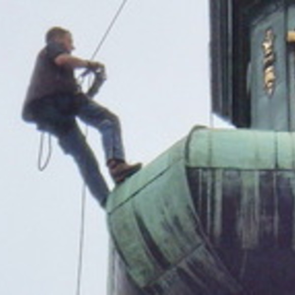 Der Turmkletterer auf der Stadtpfarrkirche Urfahr am 14. Juli 2015 zu den Bildern: Der Turmkletterer auf der Stadtpfarrkirche Urfahr